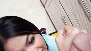 Petite Asian MILF banged and blowjob by a tattooed guy
