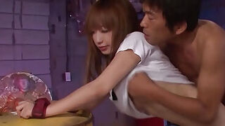 Horny Japanese school-girl Wakaba Onoue gives blowage and gets pummeled rock-hard